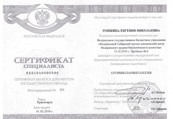 Оториноларингология, 2019, Федеральный Сибирский научно-клинический центр ФМБА